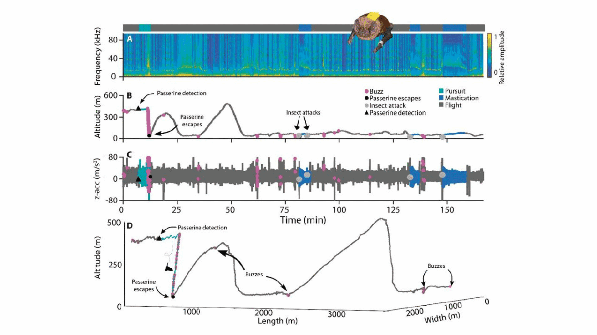 Obwohl Milliarden von Kleinvögeln saisonal in der Nacht in großen Höhen durchziehen, wurden nur drei Fledermausarten gefunden, die diese reichhaltige Beutequelle konsequent nutzen. Es ist jedoch nach wie vor unbekannt, wo und wie diese Fledermäuse relativ große Sperlingsvögel als Beute aufspüren, fangen und verzehren. Hier hat das Team hochauflösende Biologging-Tags verwendet, um zu zeigen, dass Riesenabendsegler in große Höhen aufsteigen, lange echogesteuerte Verfolgungsjagden unternehmen und wandernde Singvögel im Flug verzehren.