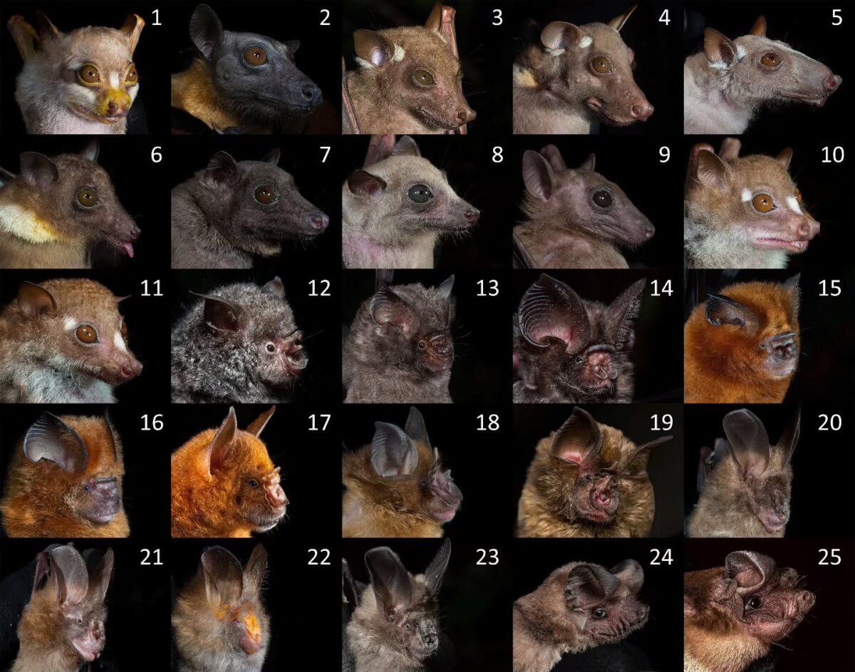 Das Team berichtet über 33 neue nationale Nachweise und drei zusätzliche Taxa, die einer weiteren taxonomischen Bestätigung bedürfen. Zu den bemerkenswerten Neuzugängen gehören Casinycteris campomaanensis, Coleura afra, Glauconycteris superba, Hipposideros curtus und Mops petersoni.